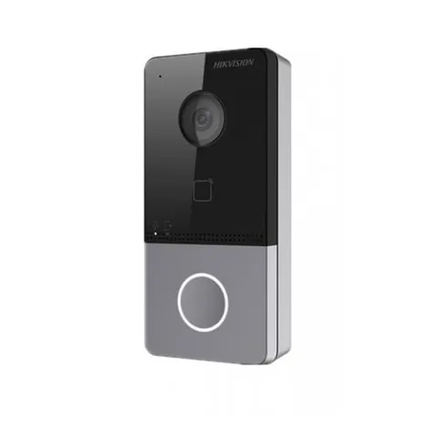 Доступные цвета: серебристый. Вызывная панель DS-KV6103-PE1, Hikvision, угол обзора панели 129°, с ИК-подсветкой. Работает при низком освещении. Отсутствует встроенный считыватель карт MiFare.