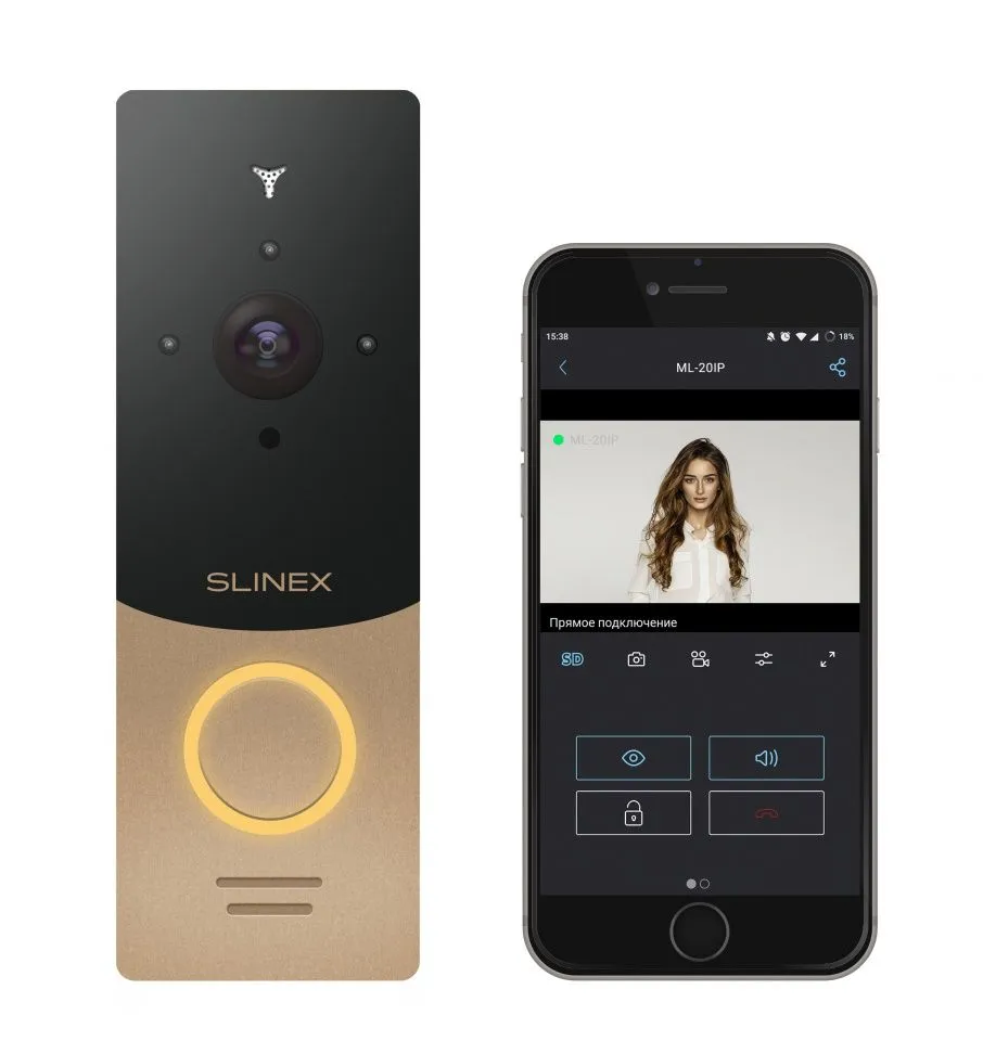 Доступные цвета: золото + черный, золото + белый, серебро + черный. IP видеопанель, которая переадресует вызов на смартфон без обязательного подключения к монитору, выносная антенна Wi-Fi, удаленный просмотр со смартфонов, разрешение 1,0 MP.