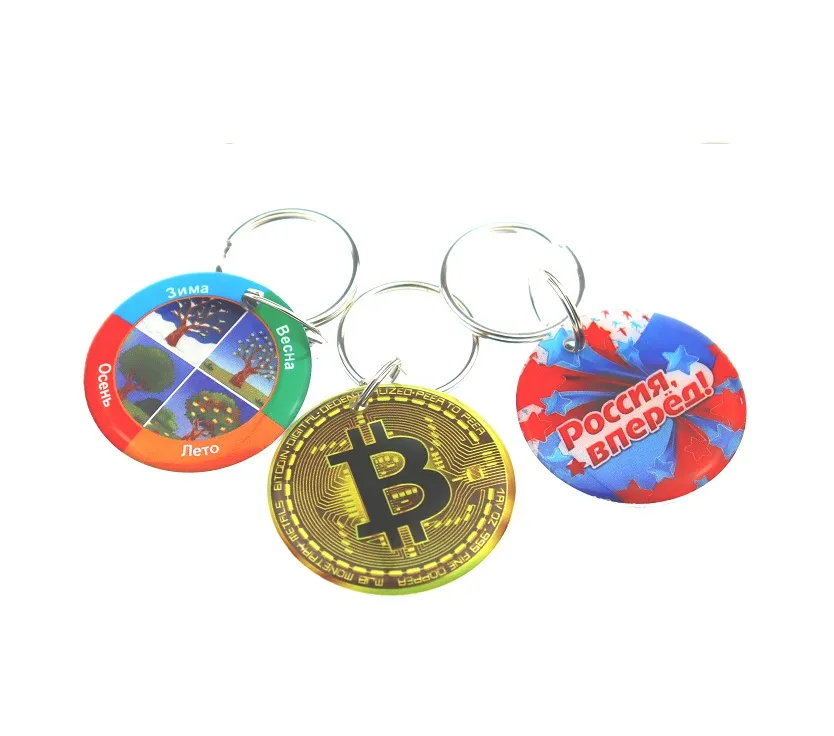 Заготовка RFID (T5577) брелок стандарта EM-Marin, HID ProxII, Motorola (Indala) бесконтактного взаимодействия с возможностью перезаписи. Выглядит в форме диска с изображением мировой криптовалюты биткоин. В корпусе миниатюрной карты с цветным рисунком под слоем прозрачной эпоксидной композиции.